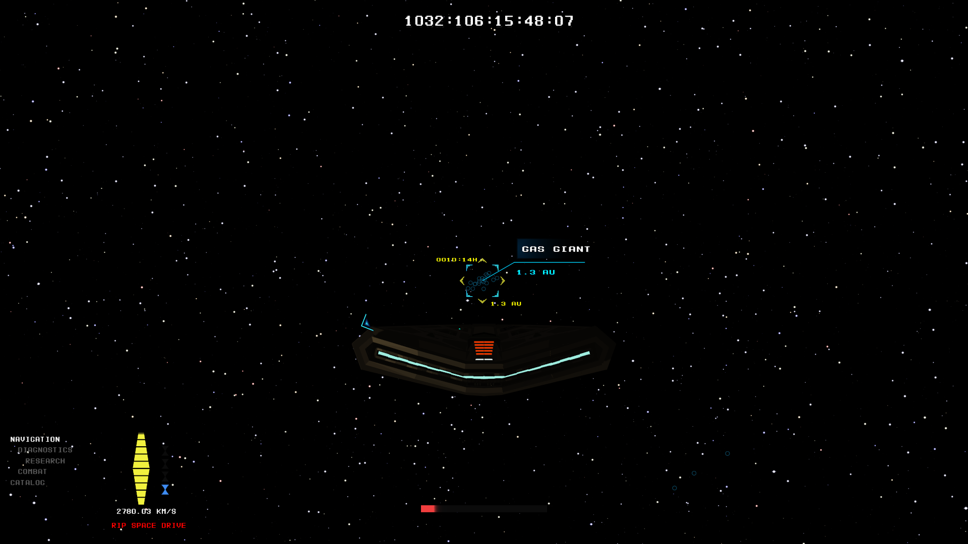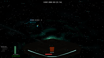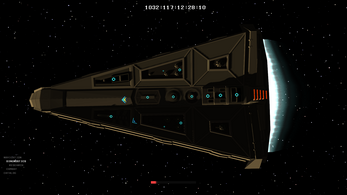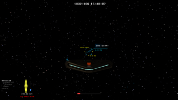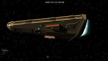 Game time is scaled up and down dynamically to allow the ship to reach it's destination in a reasonable amount of real time. This is done because it can take hours, days, or even months of game time for the ship to reach it's destination. Game time is displayed at the top of the screen.